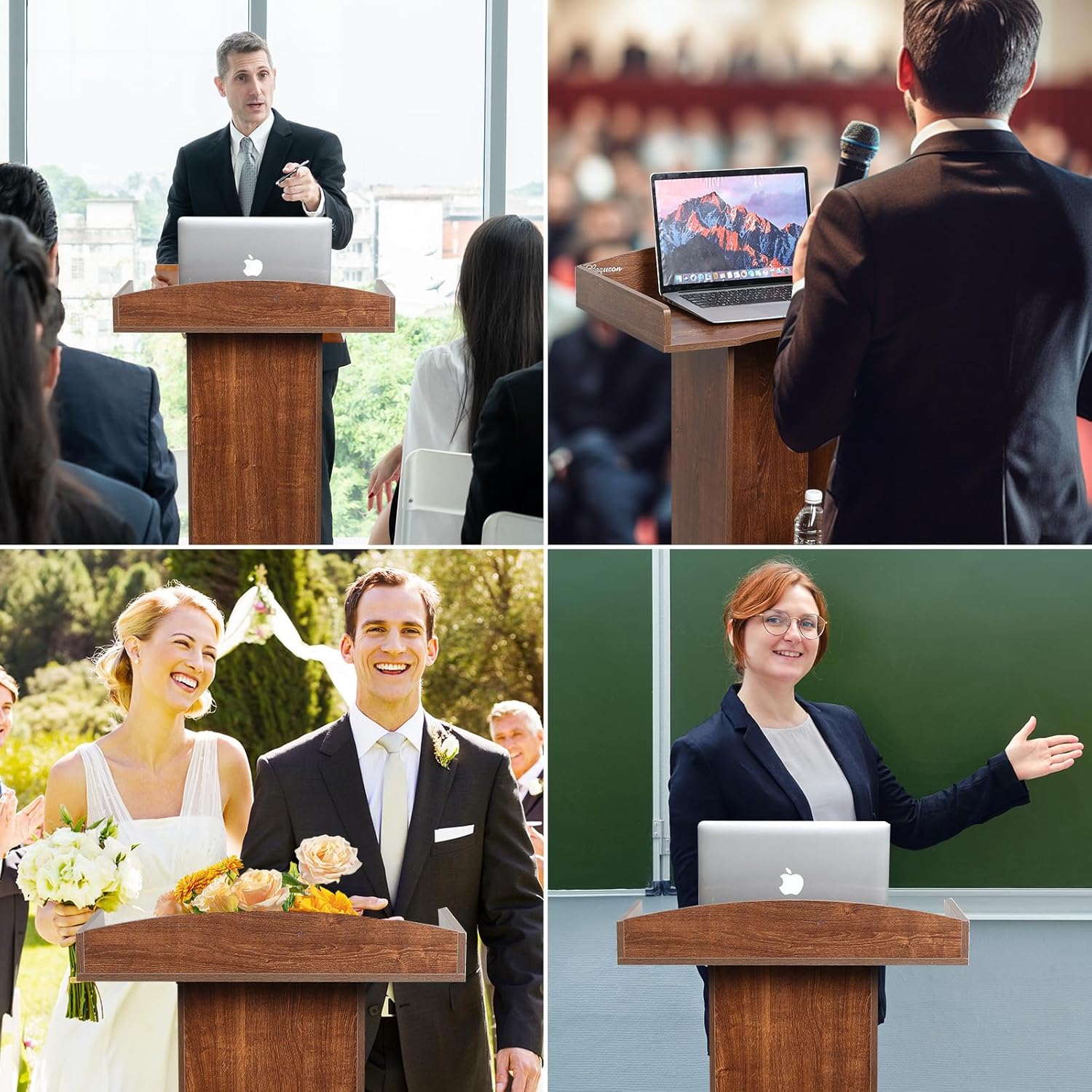 - 𝑾𝒊𝒅𝒆 𝑨𝒑𝒑𝒍𝒊𝒄𝒂𝒕𝒊𝒐𝒏: Bringing an elegant style to any speech, this lectern is suitable for presentations in conference rooms, meeting halls, and religious establishments, for lectures in classrooms, or as a reception desk in restaurants.