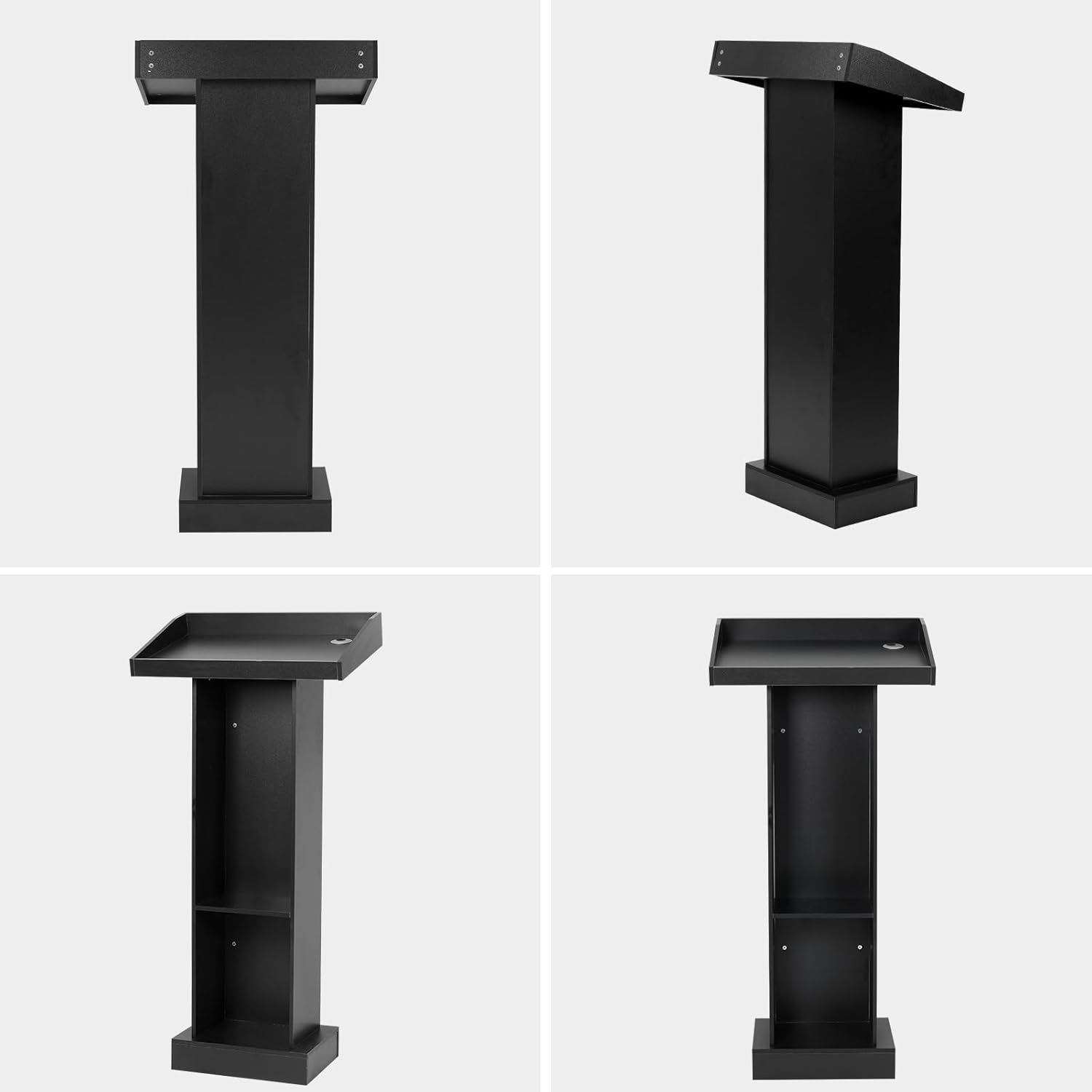 - More Space: The podium includes 2 levels of open storage space where speakers can conveniently store water bottles, bags, briefcases, and books.