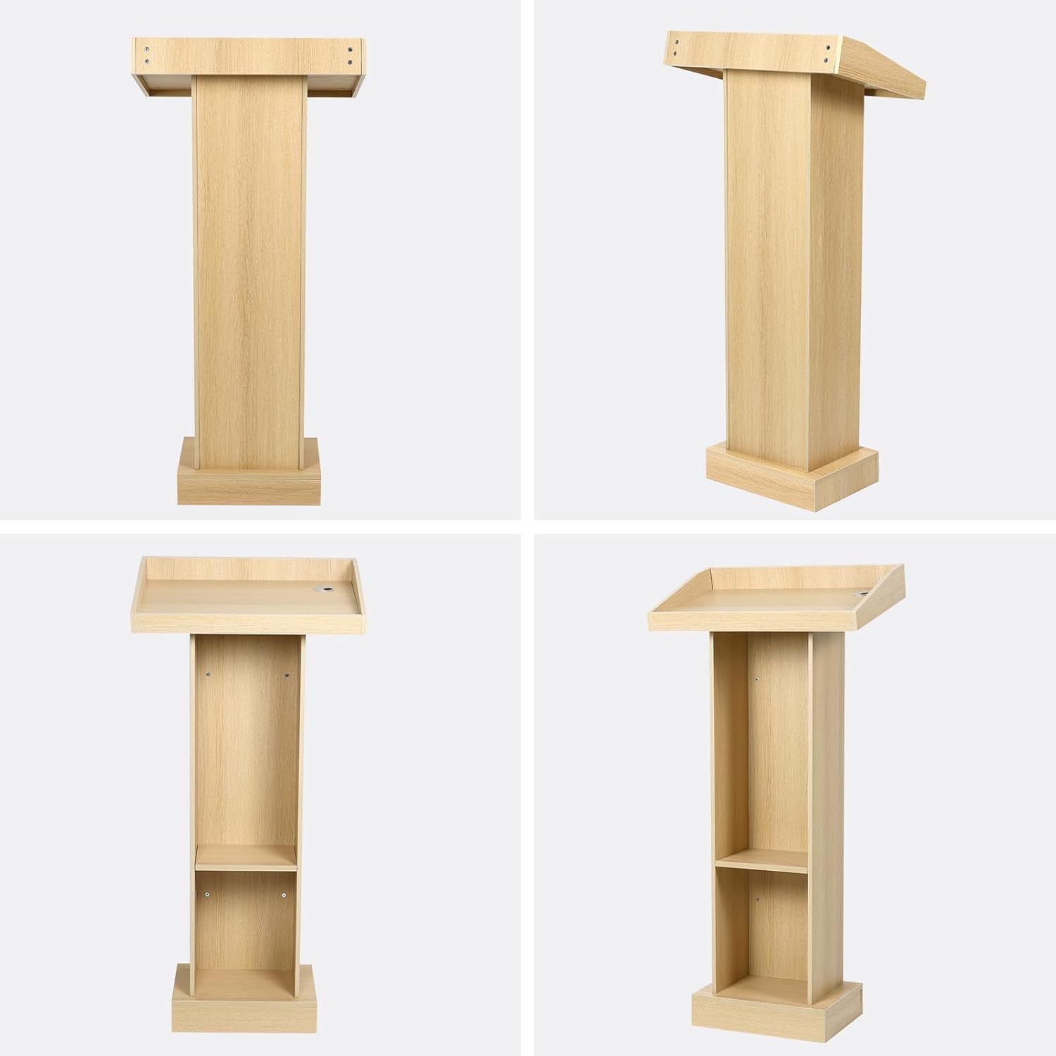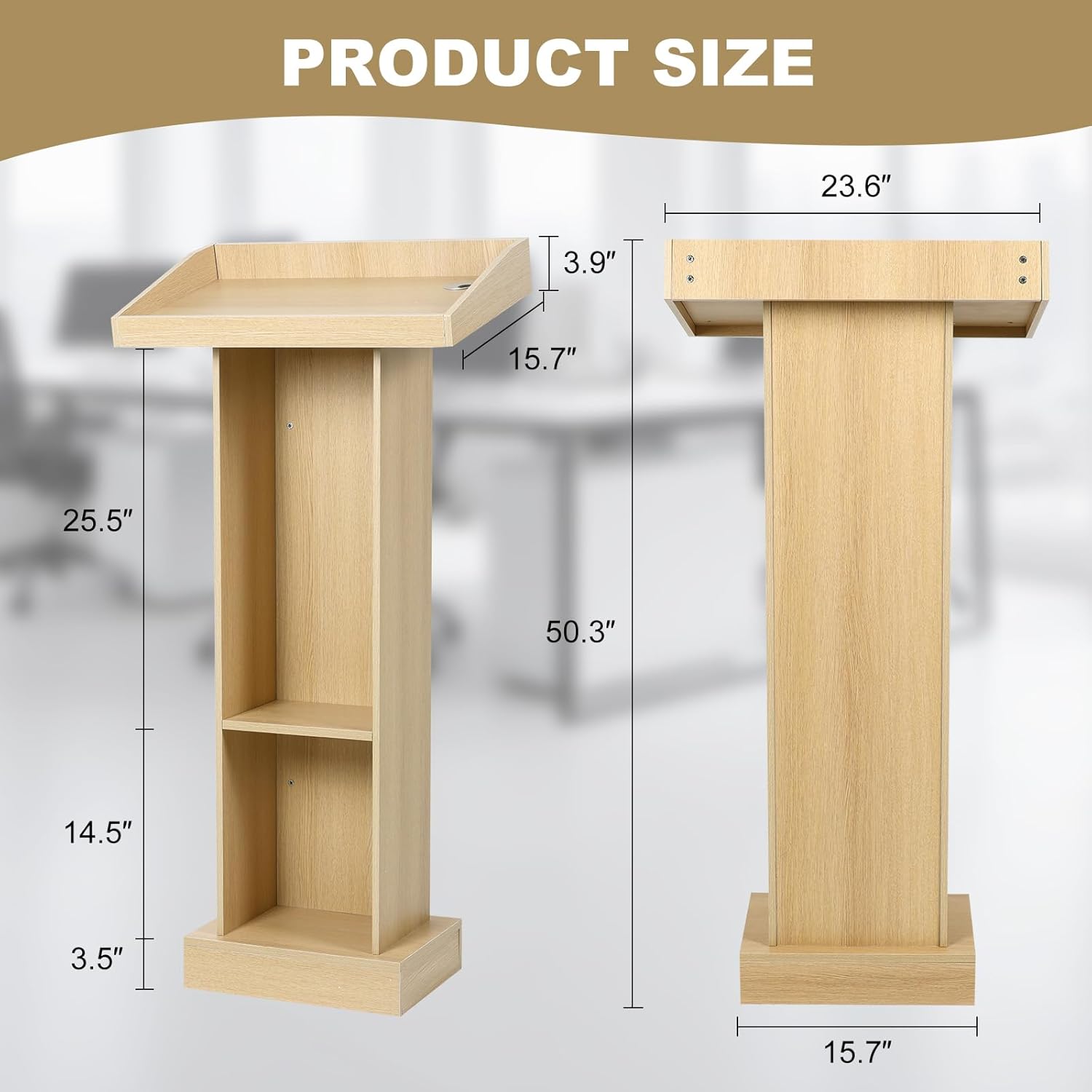 - DESIGN: Elegant farmhouse-style wooden podium featuring a slanted top surface and storage compartments perfect for speeches and presentations